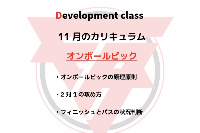 【テーマ:オンボールピック】 12月の、Development classha 実践で使える判断力と連動性を強化します。 ✅ゲットアクション ✅3人目の動…